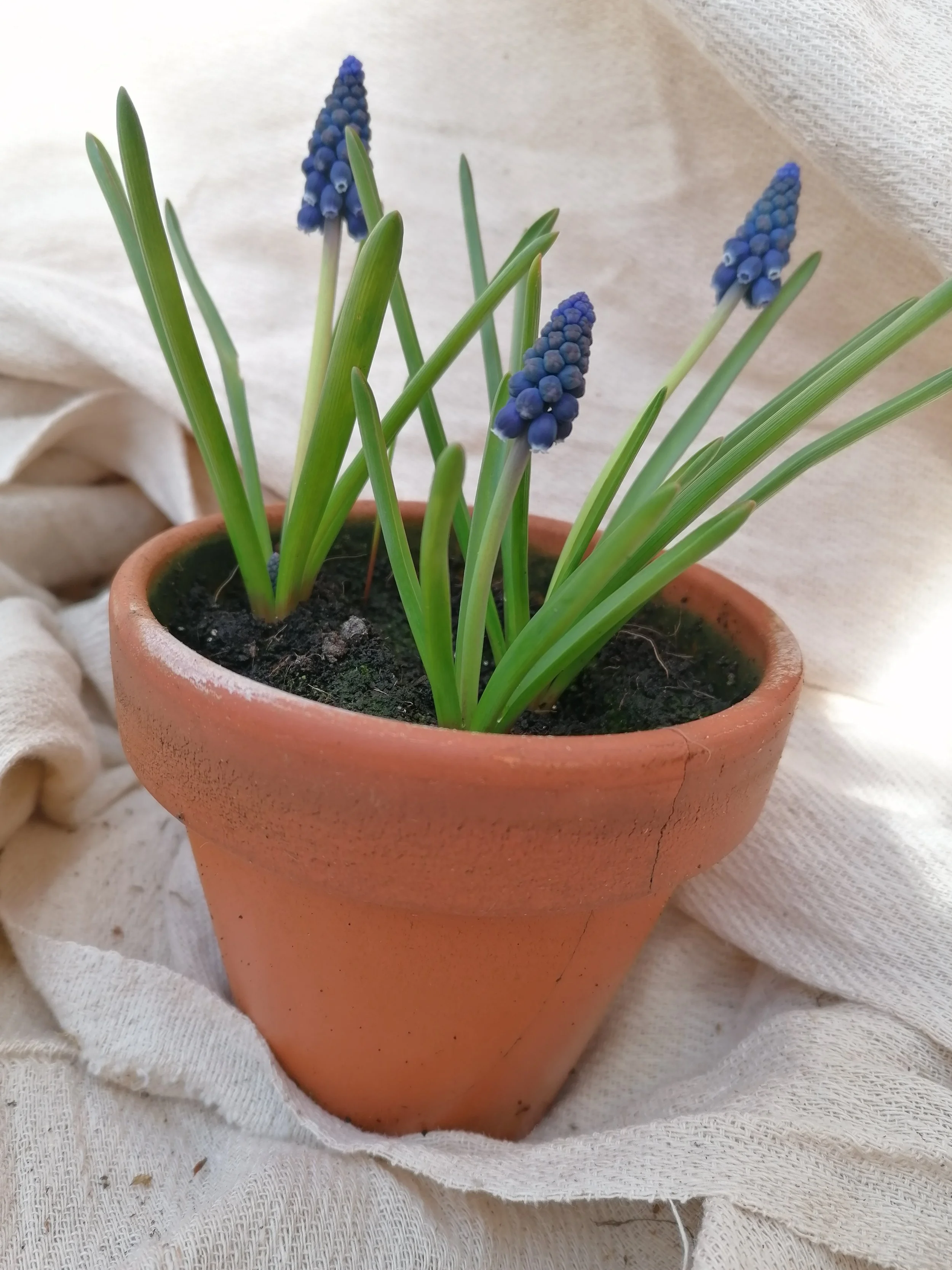 A terracotta pot planted with a seasonal mix of scented narcissi, muscari and fritillaria, ready to flower and enjoy straight away. Soft fragrance, fresh colour and natural spring character in one simple arrangement. Come along and choose your favourite.